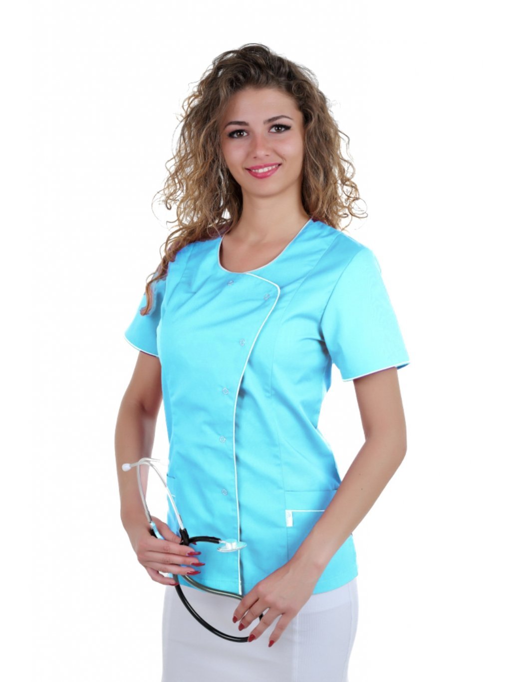 Egészségügyi blúz ELIZABETH Világos türkiz/Fehér